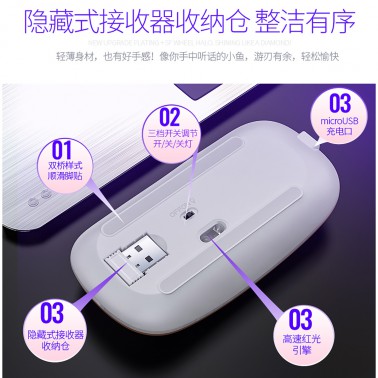 无线鼠标充电式静音办公适用于苹果戴尔惠普联想笔记本电脑台式
