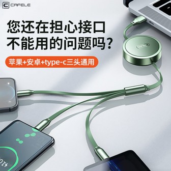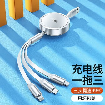 苹果安卓华为三合一加长手机数据线快充一拖三充电线便携多头通用