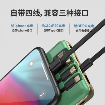 充电宝四线8000M自带线轻薄小巧大容量移动电源
